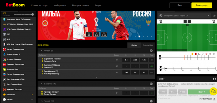 На сайте букмекерской компании БетБум можно делать ставки не только на предстоящие матчи, но и по ходу событий. Бет бум существует на рынке онлайн-беттинга с 2010 года и имеет официальную лицензию.