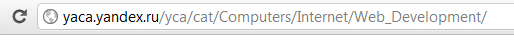 На этом этапе нам надо заполучить список площадок из Яндекс.Каталога, только не всех, а из определенной рубрики. Разберем на примере моего сайта HomeleRSS.ru. Вбиваем в поиск по каталога URL сайта, чтобы определить рубрику, в которой он находится: